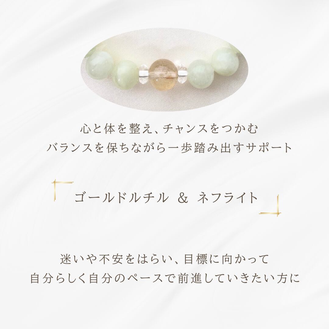 「強運の石」ゴールドルチルクォーツと「安定の石」ネフライトのブレスレット
