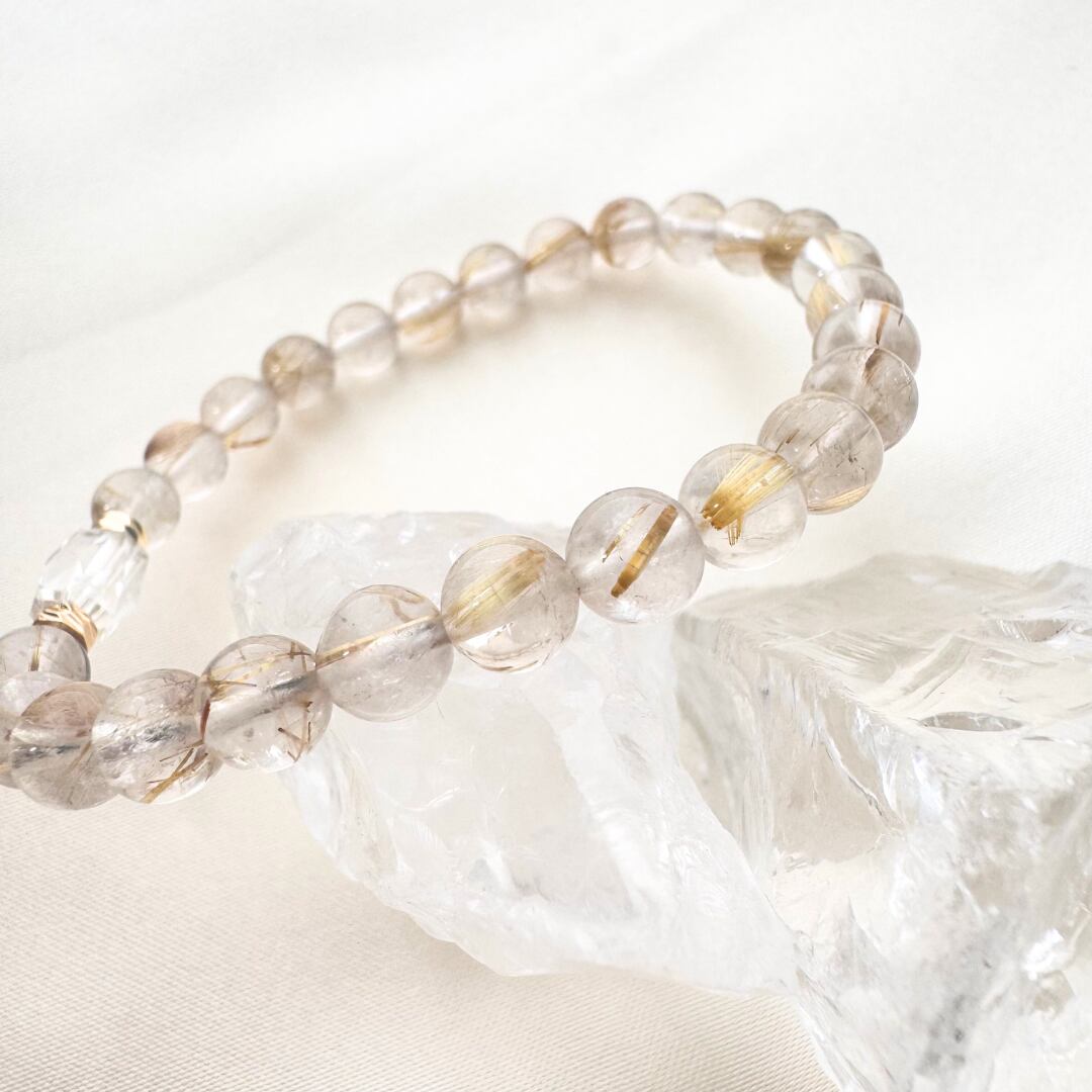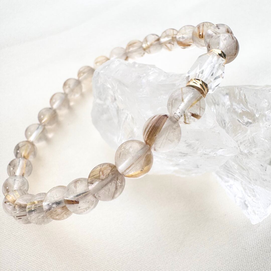 ゴールドルチルと水晶のブレスレット
